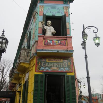 Je traverse la Boca par le Caminetto, la rue plus célèbre du quartier avec ses échoppes de souvenir, et peintres ambulants, m’exerce à un cours de tango improvisé avant d’arriver sur les quais de la Darsena. Il est temps de reprendre un bus pour rejoindre le centre ville, car l’atmosphère des quais est peu rassurante et reluisante !