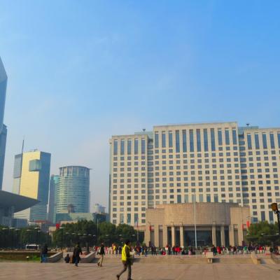 La tour du World Financial Center haute de 492 mètres et la Tour de Shanghai construite en 2015 haute de 623 mètres, étant désormais la plus haute tour de Shanghai et la troisième au monde. La pollution est visible en haut de la tour et la visibilité n’est pas terrible. A peine revenu sur terre c’est pour m’engouffrer dans le tunnel touristique du Bund long de 646,7 mètres à bord d’un petit métro automatisé fabriqué en France ! De l’ancienne société SK originaire de Bagnères de Bigorre. Les parois du tunnel ont la particularité d’être éclairées avec des effets psychédéliques. Bon le trajet est kitsch mais à le mérite de rejoindre l’autre rive rapidement et d’atteindre ma nouvelle étape la place du peuple, centre culturel et administratif de Shanghai avec ses musées, son grand théâtre et son hôtel de ville.