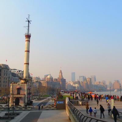 De la belle promenade du Bund, le point de vue sur l’autre rive et les tours du nouveau quartier de Lujiazui est superbe, malgré un temps brumeux en cette soirée.