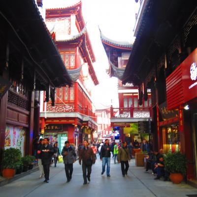 Une longue marche me mène aux faubourgs du vieux Shanghai, le quartier du Jardin Yuyuan. La vieille rue est délimitée par la petite porte est. Cette rue abrite une quantité incroyable de bijoutiers et de marchands d’or et d’argent mais également des salons de thé. Yuyuan avec son marché est très prisé par les chinois pour ses restaurants et ses nombreuses boutiques vendant décorations fêtant le nouvel an Chinois qui aura lieu cette année le 8 Février.