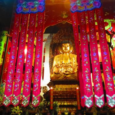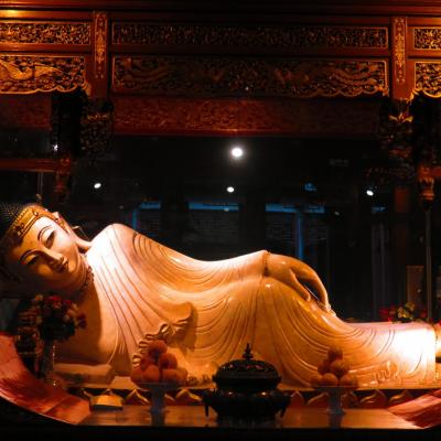Réel contraste également avec la dernière visite de la journée, le Temple du Bouddha de Jade. Temple bouddhiste construit entre 1911 et 1918, encore habité par des moines. Le temple est célèbre pour abriter un magnifique Bouddha de jade blanc, haut de 1,95 mètres et pesant 3 tonnes. Il fut ramené de Birmanie en 1882 par un moine qui aurait parcouru le Tibet à la recherche des fonds nécessaires pour construire un temple dédié au Bouddha. On ne peut malheureusement le photographier.