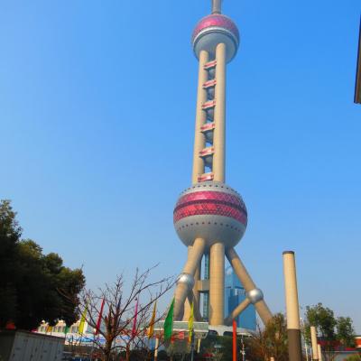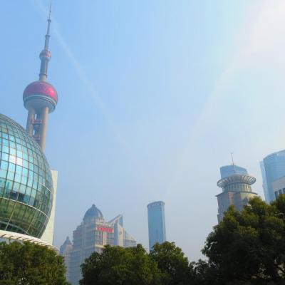Je rejoins ce matin le quartier de Lujiazu qui se situe en face du Bund, sur la rive droite du fleuve. Quartier récent et moderne construit en à peine vingt ans sur les terrains d’anciens entrepôts, je débute ma visite par la Tour de télévision dite « Perle de l’Orient » . Symbole du quartier elle a été construite en 1994, et avec ses 468 mètres de haut a été pour un temps la première tour en Asie et la troisième au monde. De la plateforme située à 265 mètres on peut observer ses concurrentes et voisines situées à deux pas dans le quartier de Pudong qui l’ont dépassée.
