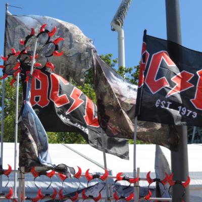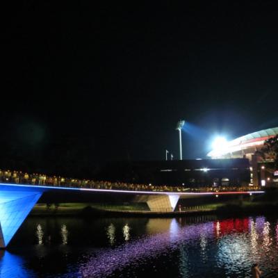 Après avoir fait une pause à l’auberge, je regagne dans la soirée les abords du stade pour écouter les chants ou cris de ces papys hurlant ! … on est bien loin de Kylie Minogue ou des Spices Girls… Le concert vient de s’achever sur le fameux Highway to Hell et je traverse le pont permettant de regagner le centre  ville  en compagnie de milliers de fans apparemment ravis de la prestation de leur groupe préféré.