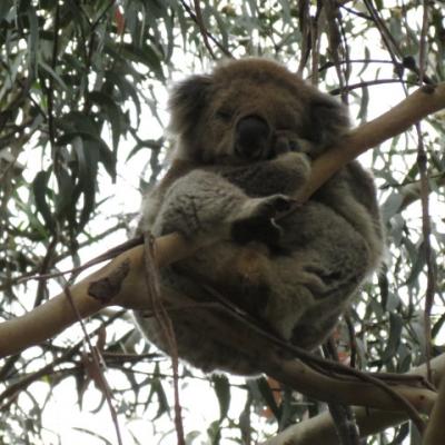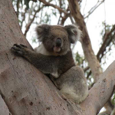 Nous allons faire deux arrêts successifs dans le parc national d’Ottway où les koalas paraissent accrochés aux branches des eucalyptus et les cacatoès familiers au touristes viennent quémander nourriture.