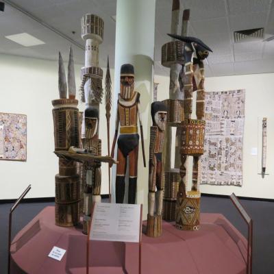 Après avoir regagné respectivement nos hôtels, nous partons à la découverte de cette cité censée être vivante et multiculturelle. Elle est plutôt désertée, en ce dimanche, étouffée par une forte chaleur et un taux d’humidité proche de 90% me rappelant mes années thaïlandaises. Nous nous dirigeons avec le beau 4X4 au nord de la ville pour visiter le musée et galerie d’art du Territoire du Nord (Museum and Art Gallery of the Northern Territory) présentant des expositions d’art aborigène et le cyclone Tracy qui a dévasté Darwin en 1974. Le musée abrite également un crocodile d’eau salée empaillé d’une longueur de 6 mètres au doux nom de Sweatheart.