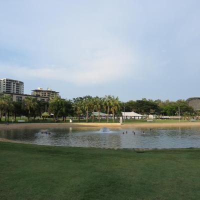 Une bonne nuit de sommeil, un petit déjeuner gargantuesque, je quitte ma chambre climatisée pour m’aventurer sous une chaleur humide dans les rues de Darwin. Un petit tour rapide dans le parc du Bicentenaire, je suis déjà entièrement trempé de sueur… je suis tout de même motivé à faire une grosse heure de marche pour garder le rythme ! L’orage gronde, il est temps de rentrer à l’hôtel préférant prendre une bonne douche dans ma salle de bain plutôt que dans la rue !