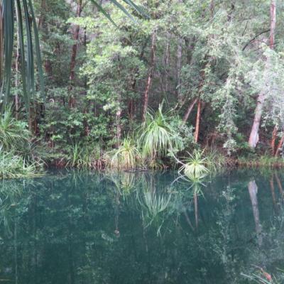 Nous quittons ce matin Jabiru pour nous diriger à l’extrémité sud est du parc de Kakadu afin de faire une randonnée dans la foret pluviale jusqu’au sommet des chutes de Maguk. Elles sont connues sous le nom d'Echo Pool dans le film Crocodile Dundee. La petite randonnée de 3 kilomètres est fort agréable, permettant de se baigner dans la piscine de Maguk, une des rare piscine naturelle du parc où l’on peut se baigner en toute sécurité, les rangers ayant assuré au préalable des sondages pour vérifier la non présence de crocodiles !