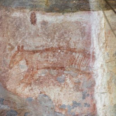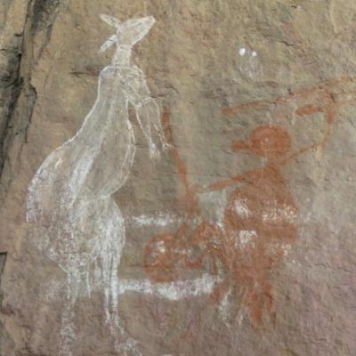 Nous arrivons à Jabiru, le village situé au milieu du Parc National du Kakadu inscrit au Patrimoine mondial. Nous nous rendons au bureau du parc national pour nous enquérir des conditions de route et des sites et sentiers de randonnée ouverts au public en ce début de saison humide. Malheureusement l’accès aux cascades jumelles et Jim point d’intérêt principal du parc sont fermées suite à un récent incendie. Le parc est cependant suffisamment grand pour nous occuper pour les deux jours à venir ! Sous les conseils de la ranger nous nous rendons au nord est du parc pour visiter le rocher Ubirr, présentant de magnifiques peintures d’art rupestre aborigènes datant de 5000 à 20000 ans. La ballade de deux kilomètres au cœur du site est vraiment superbe. Nous croisons deux wallabies gambadant autour des grottes où les nombreuses peintures sont encore présentes sur les façades. C’est incroyable que ces peintures aient conservé jusqu’à ce jour des couleurs éclatantes.