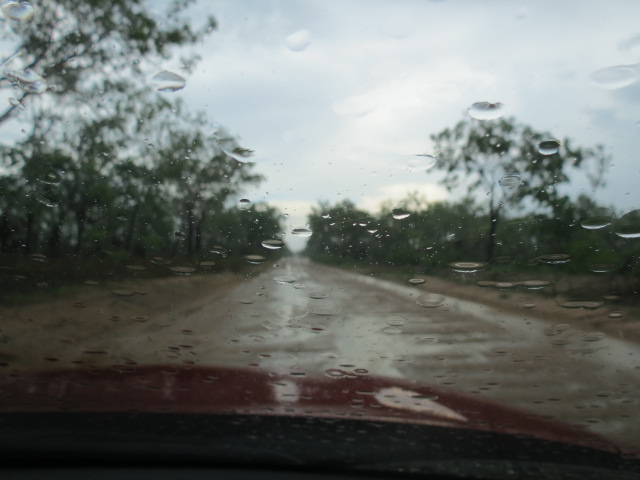 C’est peut être mieux ainsi, nous arrivons juste à temps au parking avant l’averse orageuse. La dernière randonnée prévue est annulée, nous regagnons donc Darwin par la piste. C’est l’occasion de passer en mode 4X4 et de franchir sans trop de difficulté les quelques radiers et passages boueux sur la trentaine de kilomètres de piste.
