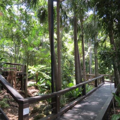 En ce début de matinée, je quitte le centre ville en bus pour le Mont Coot-tha situé à 10 km. Au sommet du Mont, un belvédère offre une belle vue sur tout Brisbane jusqu’à Moreton Bay au loin et aux Glasshouse Mountains. Je rejoins par la route les Jardins botaniques situés sur les contreforts de la montagne à 1,5 km de marche. Ces jardins fondés en 1976 sont splendides; renfermant plus de 20000 espèces, du spécimen d’herbe à l’arbre exotique. Le jardin est regroupé par thème abritant une superbe forêt pluviale, une forêt de bambous mais surtout un magnifique jardin japonais, construit et offert par le Japon lors de l’exposition universelle de 1988