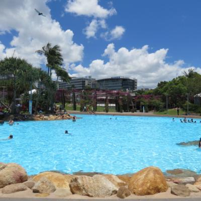 C’est ici sous la douceur des tropiques un Paris Plage ou Toulouse Plage toute l’année, les australiens sont chanceux de bénéficier de ces superbes installations. L’envie ne me manque pas d’aller faire un petit plongeon. La plage est bondée, un réel contraste avec nos piscines naturelles des parcs de Nitmiluk ou de Litchfield où nous étions pratiquement les seuls à nous baigner.