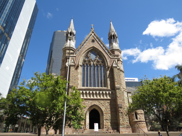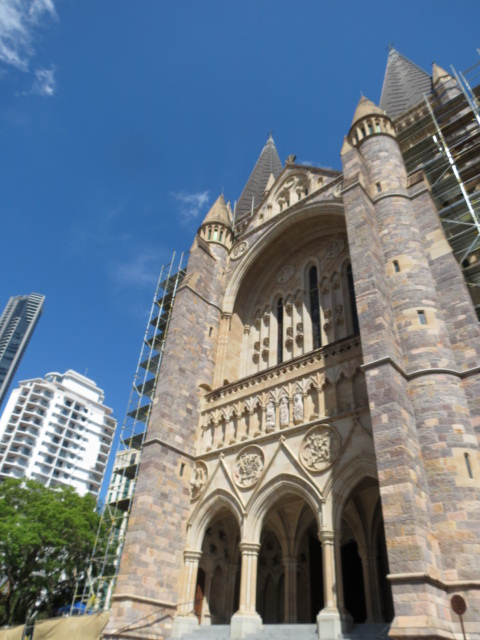 Je déambule à présent dans le centre commercial de la cité parmi les arcades historiques et les quelques cinq-cents magasins de Queen Street Mall, je visite rapidement la jolie Cathédrale catholique de St Stephen de style gothique achevée en 1874,