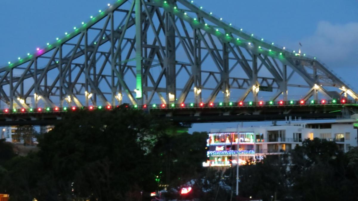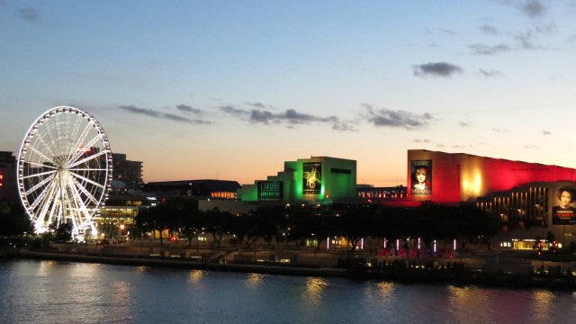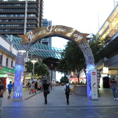 Comme la veille, un stop à l’hôtel pour une petite pause avant de rejoindre le quartier de Riverside situé au pied du Story Bridge enguirlandé de lampions verts et rouge aux couleurs de Noël. Les berges rives sud et nord sont totalement aménagées et piétonnes, véritables lieux de détente, agrémentés d’aires de pique nique, parcs, restaurants et bars.