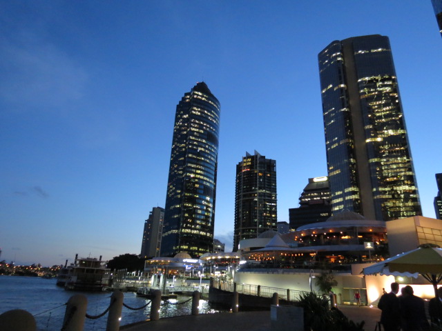 Un après midi de transition, il faut 4 heures et trente minutes de vol pour rejoindre Brisbane le tout additionné d’une demie heure de décalage horaire font qu’il est pratiquement 20h lorsque je prends possession de ma chambre d’hôtel en plein centre ville de la capitale du Queensland.