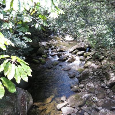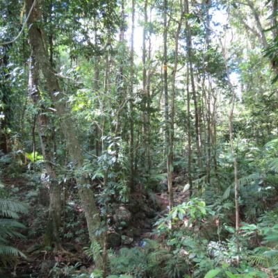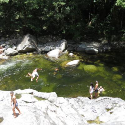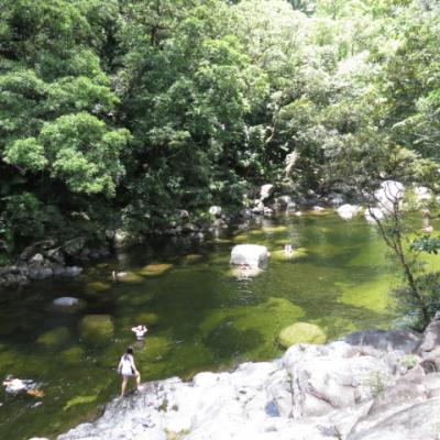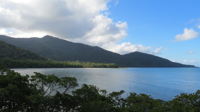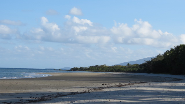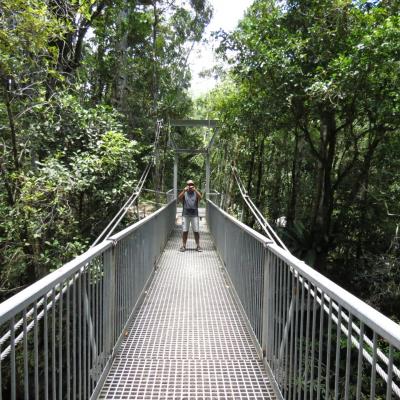 Le parc de Daintree et sa forêt sont classés au patrimoine mondial. Il s’agit de la plus ancienne forêt vierge de la planète vieille de plus de 135 millions d’années. La forêt de Daintree est réputée pour accueillir le plus vaste éventail de flore et de faune au monde. Le parc de Daintree est divisé en deux parties. Une partie au niveau du village de Mossman à 30 kilomètres à l’intérieur des terres et une deuxième située en bord de mer. Nous regagnons la première partie du parc et son centre d’information où des navettes assurent des liaisons du parking au sentier situé à 2,5 km plus loin menant à la forêt tropicale et aux berges de la rivière Mossman. Nous choisissons de nous y rendre à pied et débutons cette première randonnée au cœur de la forêt en traversant la rivière par un pont suspendu. Cette balade nous permet de nous familiariser avec cette magnifique flore et découvrons en autre les fougères zamia vieilles de 600 millions d'années, dont le tronc souterrain s'est développé pour se défendre contre les dinosaures. En revanche nous restons sur notre faim concernant la faune. Hormis de voir de nombreux papillons aux couleurs vive, manquent à l’appel, oiseaux, les rats-musqués kangourous et les timides casoars, une espèce en voie de disparition, avec leur cou bleu et leur coiffe royale censés habiter la forêt. Cette petite randonnée se conclue par une agréable baignade dans les piscines naturelles de la rivière Mossman, l’eau est bien plus fraiche que dans les parcs visités précédemment sur Darwin, mais reste agréable pour une baignade et une petite pause pique-nique. Nous regagnons la voiture afin de rejoindre la partie côtière du parc.