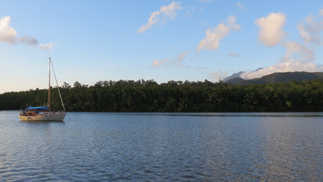 A la sortie du parc, nous faisons un dernier arrêt en bordure de la Daintree River, espérant voir en cette fin de journée au moins un crocodile. Que néni ! Un couple d’australien confortablement installé sur le ponton sirotant sur leurs transats vin blanc ou bière en guise d’apéritif, nous confirme que la rivière est vraiment peuplée de crocodiles. Cependant en cette période estivale, la température de l’eau est suffisamment chaude pour que ces derniers n’aient pas besoin de remonter à la surface ou à farnienter sur les berges afin de réguler leur température sous les rayons du soleil. Nous quittons donc le parc sans avoir vu le moindre animal. Patrick passionné d’oiseaux et de faune est finalement plus déçu que moi.