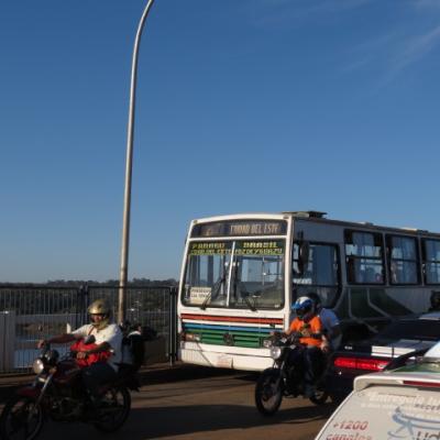 Je regagne Foz do Iguaçu et pour le fun je traverse une nouvelle fois la frontière, mais cette fois-ci en traversant le pont de l’amitié et le fleuve Parana en regagnant l’autre cité voisine, Ciutad de l’Este au Paraguay. 3 pays en un jour ! Il n’y a pas de contrôles douaniers entre les deux pays.