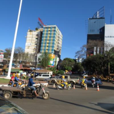 Bon c’est vraiment pour le fun car Ciutad de l’Este n’a aucun intérêt. C’est la deuxième ville du Paraguay après Ascunsion sa capitale comptant environ 300 000 habitants. C’est une ville franche, un grand centre commercial (à comparer avec le Pas de la Case en Principauté d’Andorre mais puissance 10 !). Des centres commerciaux plus ou moins luxueux, construits les uns sur les autres, vendant tous les mêmes articles de Hifi Téléphonie Cosmétiques… soit disant détaxés. Bref en regardant les étiquettes je ne sais pas où sont les bonnes affaires (en tout cas pour un européen) d’autant plus que j’ai des doutes sur l’authenticité des produits. Retour sur Foz do Iguazu en traversant le pont à pied.