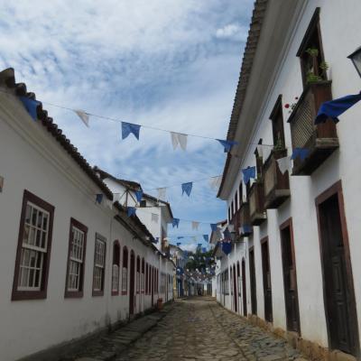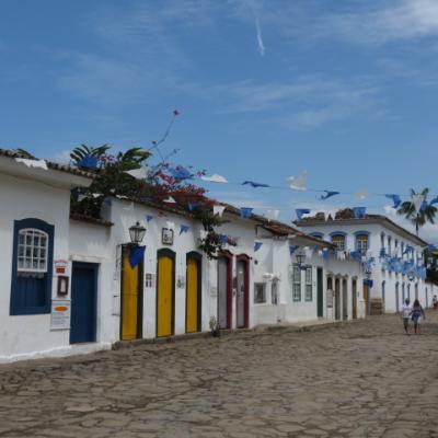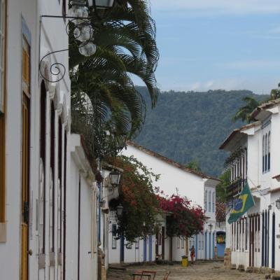 Le bateau rentre en milieu d’après midi au port de Paraty, la météo est toujours clémente pour visiter cette magnifique petite ville coloniale avec ses maisons aux murs blanchis à la chaux et aux volets colorés. La ville fondée en 1667 suite à la découverte de mines d’or et la construction de la route de l’or, a longtemps prospéré en devenant le second port du Brésil d’où partaient les galions chargés de cargaison d’or. Par la suite il a été décidé que l’or passerait par Rio, ce qui engendra le déclin de la ville, qui ne fut raccordée par une route bitumée qu’en 1950 ! C’est certainement pour une de ces raisons que le centre historique est si admirablement conservé.