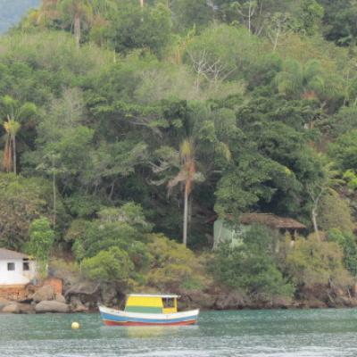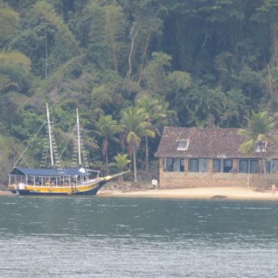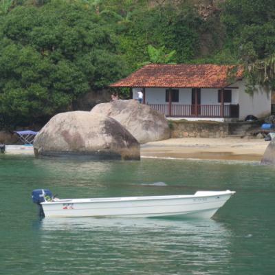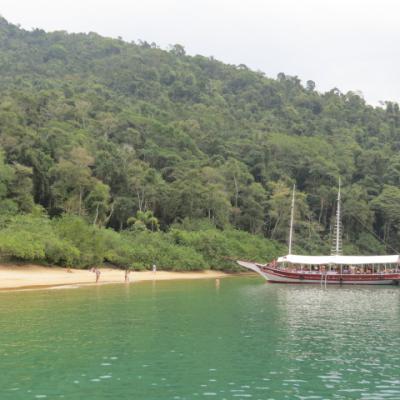 Après un bon petit déjeuner toujours composé depuis mon arrivée au Brésil de superbes jus de fruits frais, de galette de tapioca et de pao de quejo (petits pains au fromage) sur les conseils de mon hôte Simon (la météo semble pas trop mauvaise) je pars en excursion en bateau pour découvrir la baie d’Isla Grande au départ du port de Paray. La baie compte plus de 365 îles, habitées ou non, certaines privées et la croisière de 5 heures va permettre de découvrir 4 lieux magiques de la baie d’Ilha Grande, les plages de Lula et Vermelha, l’Ile Comprida et la Lagoa Azul.