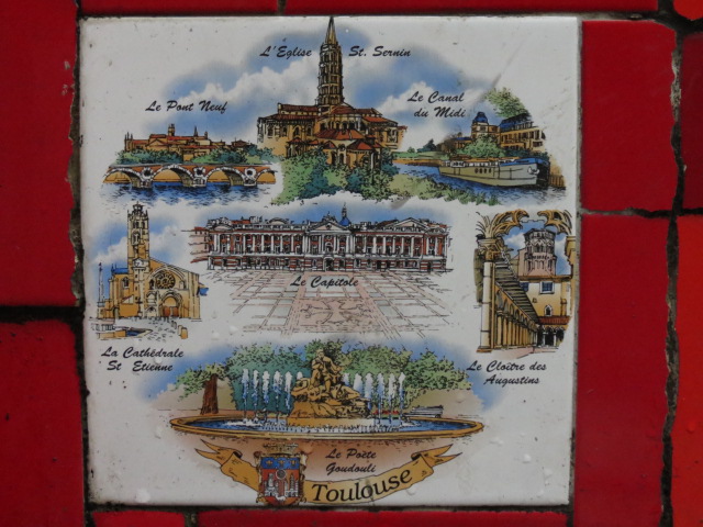 Finalement dés les premières marches sur le côté droit de l’escalier, c’est tout de même incroyable, je trouve un carreau de céramique de la ville de Toulouse ! Joli petit clin d’œil !
