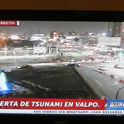 Une quinzaine de répliques vont se succéder jusqu’à 1 heure du matin. Le gouvernement par mesure de sécurité fait évacuer la totalité du front de mer chilien, en raison de risque de tsunami. Cette précaution était nécessaire car la station balnéaire de Tongoy et ses environs située à 400 km au nord de Valparaiso va être touchée dans la nuit par des vagues de plus de 5 mètres de hauteur et va subir d’importants dégâts. Mon départ prévu sur Valparaiso ce jeudi est compromis.