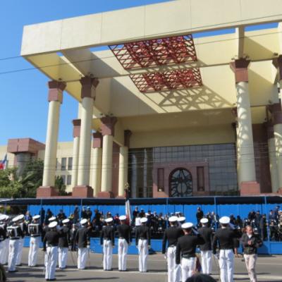 Ce vendredi est férié. Les chiliens célèbrent leur fête nationale et l’indépendance du Chili ! Contrairement au Brésil, drapeaux, cocardes, sont de sortie et fièrement arborés sur quantités de bâtiments public, maisons, bus et voitures. Le Chilien est fier et nationaliste. Par ailleurs de nombreuses manifestations sont organisées dans la ville avec bien entendu la parade militaire devant le Congrès National.