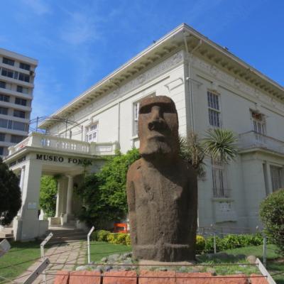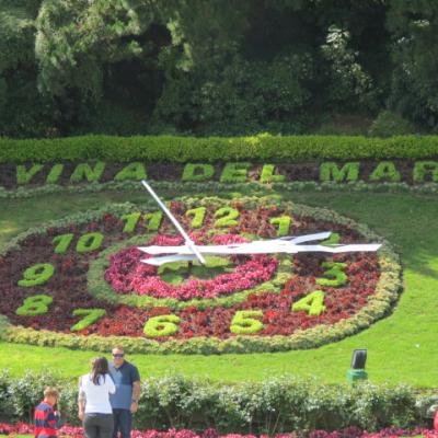 Le contraste avec Valparaiso est saisissant, Viña est pratiquement plate, dessinée en damier, traversée au centre par l’avenue Libertad et le canal Marga au nord. La ballade est cependant agréable en ce jour férié, nombreux chiliens se promènent le long du bord de mer où dans les nombreux parcs et jardins qu’offre la ville. Je m’attarde devant le musée Fonck gardé par un Mohai arrivé de l’ïle de Pâques en 1953, l’horloge de fleurs et la Quinta Vergara, ancienne demeure de la famille fondatrice de la ville convertie en musée des Beaux Arts.