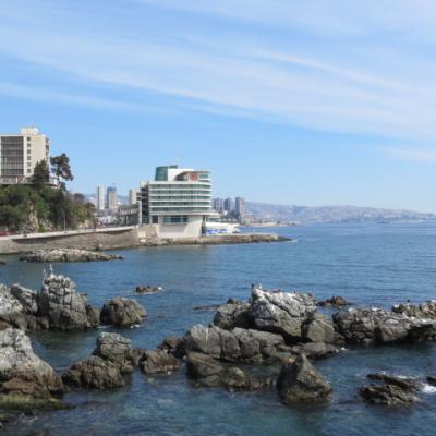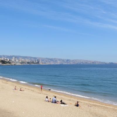 Le temps est superbe, c’est l’occasion d’aller à la plage ! Je décide de visiter la ville voisine, Viña del Mar, située juste au nord de Valparaiso, ville fondée en 1874 et est devenue rapidement la station balnéaire incontournable du Chili, grâce à son Casino, et ses plages, dont la plage Acapulco bordée d’immeubles modernes.