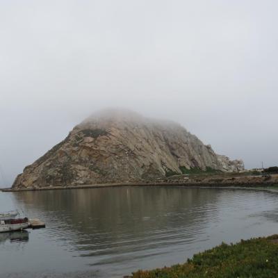 Je quitte Morro Bay, le brouillard est encore fort présent ce matin, et le fameux pain de sucre de Morro Bay est à peine visible.
