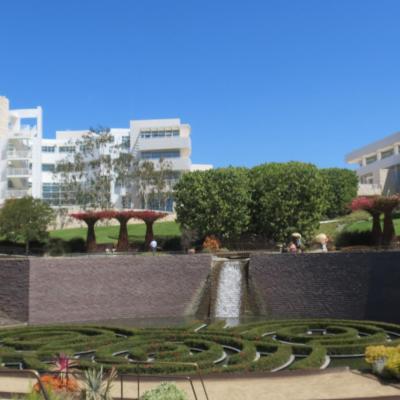 Le Getty Center construit en 1998, situé au sommet d’une colline de Bel Air, offre un magnifique point de vue sur Los Angeles. Malheureusement ce fichu brouillard de juin est toujours présent et l’on n’aperçoit pas les plages et les îles de Santa Catalina au loin.