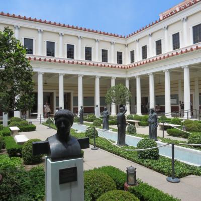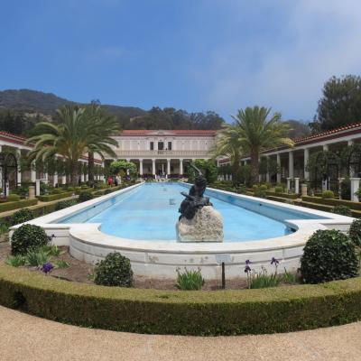 A présent direction Malibu, par le célèbre Sunset Boulevard pour la visite de la Villa Getty. La villa Getty a été construite par du magnat du pétrole J Paul Getty, milliardaire à l’âge de 23 ans et féru d’art antique et de mobilier français sur sa propriété de 26 hectares à Malibu. En effet pour accueillir sa collection croissante d’antiquités grecques et romaines, Getty a construit une reproduction de la Villa dei Papiri, une maison de campagne romaine d’Herculanum, ensevellie par l’éruption du Vésuve en 79 après J-C.