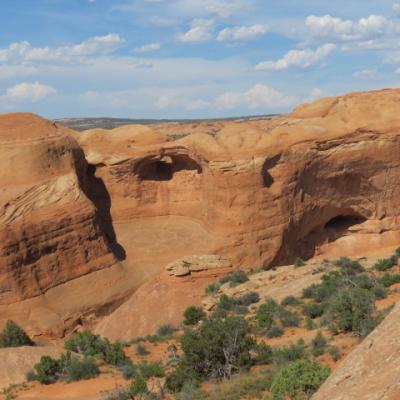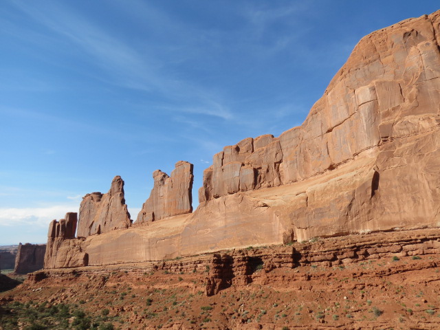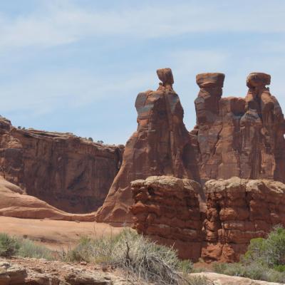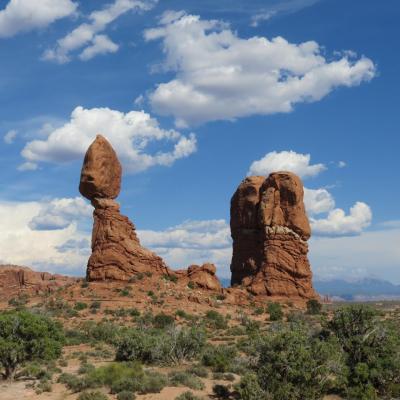 Quelques arrêts sur la route scénique en quittant le parc pour contempler le Balance Rock, un énorme rocher en équilibre, les 3 Gossips, et Park Avenue large canyon bordé par de curieuses falaises qui ressemblent également à des immeubles… d’où leur nom ! Ce canyon pour les cinéphiles a servi de décor à Thelma & Louise et à Indiana Jones et la dernière croisade….