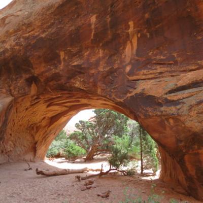 Un petit cours de géologie s’impose ! Je demande au ranger de m’expliquer la différence entre une arche et un pont ? En effet une arche est créée naturellement par les conditions climatiques (érosion, vents, différences de températures..) , le pont lui est créé suite à la puissance des cours d’eau qui progressivement trouent la roche jusqu’à créer un passage et l’agrandir plus ou moins.