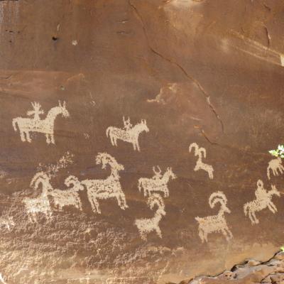 Avant de regagner le parking sur le chemin du retour je m’arrête pour voir les pictogrammes que les tribus indiennes Fremont et Utes (cette fois des vrais indiens du far ouest !) ont laissé sur des panneaux rocheux.