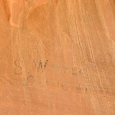 Ce sentier permet de voir sur les roches des pétroglyphes attribuées aux indiens, et des graffitis apposés par les pionniers mormons en 1871. Un dernier effort au bout du sentier pour escalader une petite colline et découvrir les poches d’eau, cavités naturelles recueillant les eaux de pluie. Le sentier est balisé des petits monticules de pierres érigées certainement par un ranger qui avait lu durant son enfant l’histoire du petit poucet…