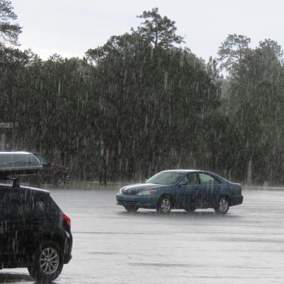 L’orage est désormais bien là, il tombe un vrai déluge et le thermomètre affiche un petit 57° F !