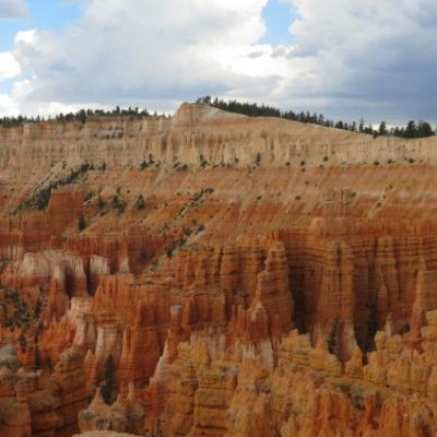 Je m’arrête donc à Sunset Point, perché à environ 2200 mètres, et je m’engage dans le sentier Navajo d’une distance de 2 kilomètres. C’est peu mais les dénivelés sont énormes puisque vous descendez pour remonter par la suite ! Je traverse ces fameux hoodoos, une belle forêt de pins avant de remonter sur le belvédère. La vue est grandiose. (un mini film panoramique est posté sur la page vidéo). L’orage malheureusement gronde et je regagne la voiture pour aller jusqu’au bout du parc à Bryce Point , belvédère à 2500 mètres qui surplombe ce magnifique amphithéâtre.