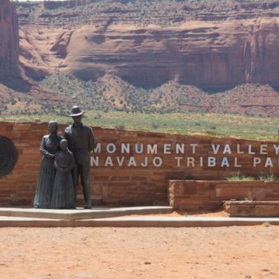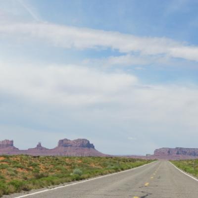 Au bout de la longue ligne droite, les mésas de Monument Valley se profilent, nous voici dans un décor de western dans lequel John Wayne sous la direction de John Ford a tourné de nombreux films.