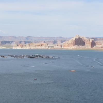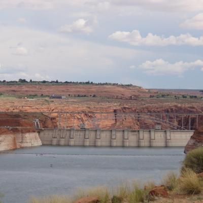 Je quitte le parc en direction de ma dernière étape de la journée. Me voici en Arizona, et direction le nord de l’Etat pour Page, seule ville ou le lac Powel est accessible. Je ne m’attendais pas à être enthousiasmé par le lac Powel, paysages similaires au lac Mead proche de Las Vegas. Le barrage Glen Canyon qui a créé artificiellement le lac est même moins impressionnant que le barrage Hoover.