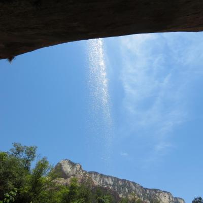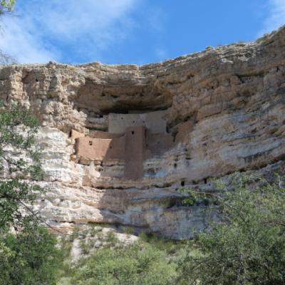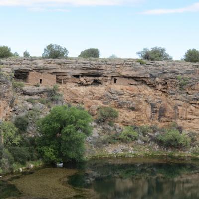 Sur la route reliant Flagstaff à Phoenix, me voici en territoire Apache et Yavapai, en plein cœur de la Verde Valley (vallée verte) . Deux arrêts s’imposent pour visiter le Montezuma Well (puits de Montezuma) et le Montezuma Castle National Monument, afin de me réconcilier avec le sorcier indien et d’espérer qu’il supprime son maléfice pluvieux. Ces deux sites sont distants de 10 kilomètres et ont été construits par les indiens Sinagua au 12ème siècle. Le puits ressemble à un petit lac de couleur émeraude, et les habitations sont nichées le long de la falaise. Les indiens avaient créé un système ingénieux d’irrigation à partir de la rivière proche pour cultiver coton et agave.