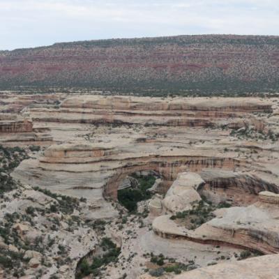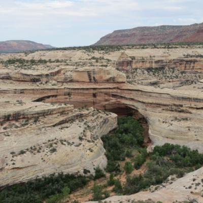 Un petit détour sur la route pour la courte visite d'un des plus petits parcs nationaux des Etats Unis, à savoir le Monument National Bridges National Parc. Ce parc d'une boucle de 10 kilomètres permet d'admirer à partir de belvédères pour les moins courageux.... c'est mon cas aujourd'hui ! 3 ponts naturels : le Sipapu Bridge Bridge et Owachomo Bridge.
