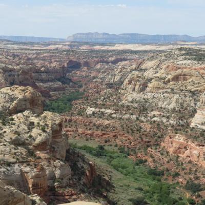 Le Parc National Capitol Reef offre une palette de falaises, dômes et gorges aux couleurs variées. Le parc est traversé par la rivière Freemont qui y a creusé un canyon. Ce canyon a été utilisé comme voie de passage par les indiens Fremont entre les 8 et 13èmes siècles, fût le repère de Cassidy et de sa bande de malfrats et plus récemment par les communautés de mormons ayant comme mission de coloniser les zones les plus reculées de l’Utah.