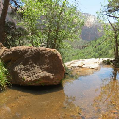 Je décide de m'arrêter à Emerald Pools Trail (randonnée des piscines d’Emeraude). Ce sentier d’environ 5 kilomètres permet de voir cascade ou piscines qui s’échelonnent sur 3 niveaux.