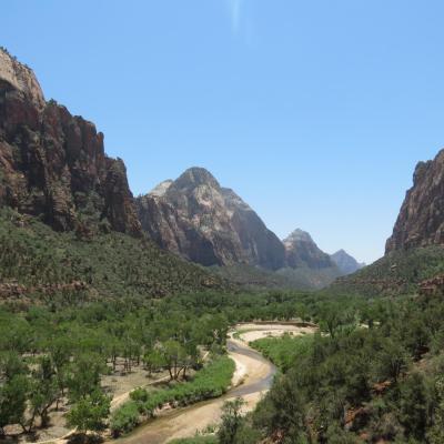 Le Parc National de Zion n'est pas très grand en superficie. Une grande partie du parc est interdite à la circulation de Mars à Octobre. Les trajets se font donc à partir d'un service de navettes qui circulent de l'entrée du Parc jusqu'au terme de la route scénique d’une longueur de 13 miles.