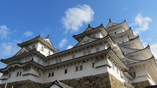 Construit à l'origine au 14e siècle puis reconstruit au 17e siècle, le château de Himeji est non seulement splendide, mais aussi un rare exemple de château d'origine au Japon. C'est à ce titre qu'il a été classé au patrimoine mondial de l'Unesco. L'ensemble composé du donjon principal à cinq niveaux et de trois donjons plus petits présente une ligne magnifique et s'apprécie tant d'un point de vue esthétique que d'un point de vue architectural.