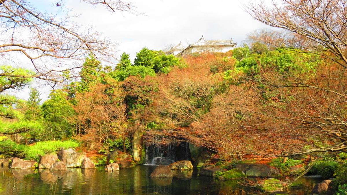 Le jardin, de 14 ha., a été créé en 1700. On y trouve d'anciennes maisons de thé, de grandes pelouses, des lacs, de gracieux bosquets et de paisibles collines, allées et cascades. Tout cela se combine délicatement pour s'harmoniser avec les collines et montagnes environnantes. Suivant les saisons, les érables, les cerisiers et les pruniers doivent offrir de beaux paysages.