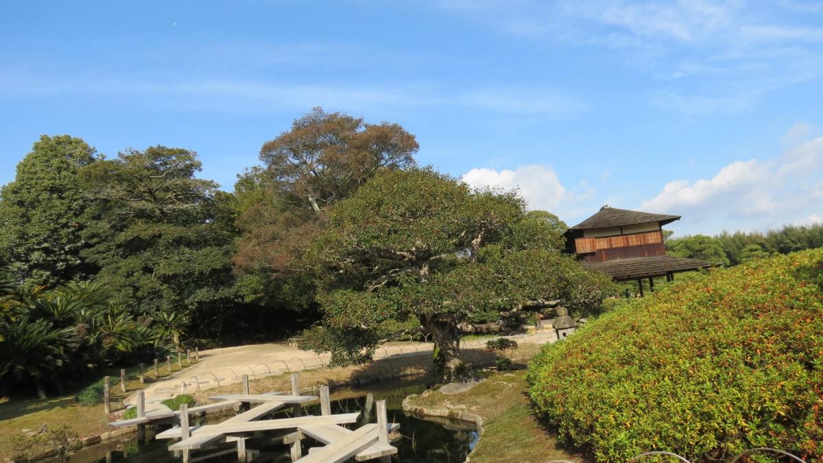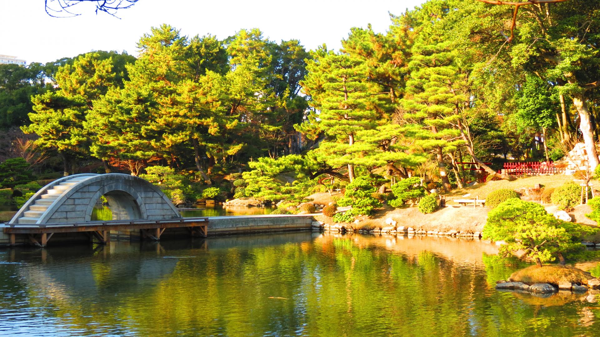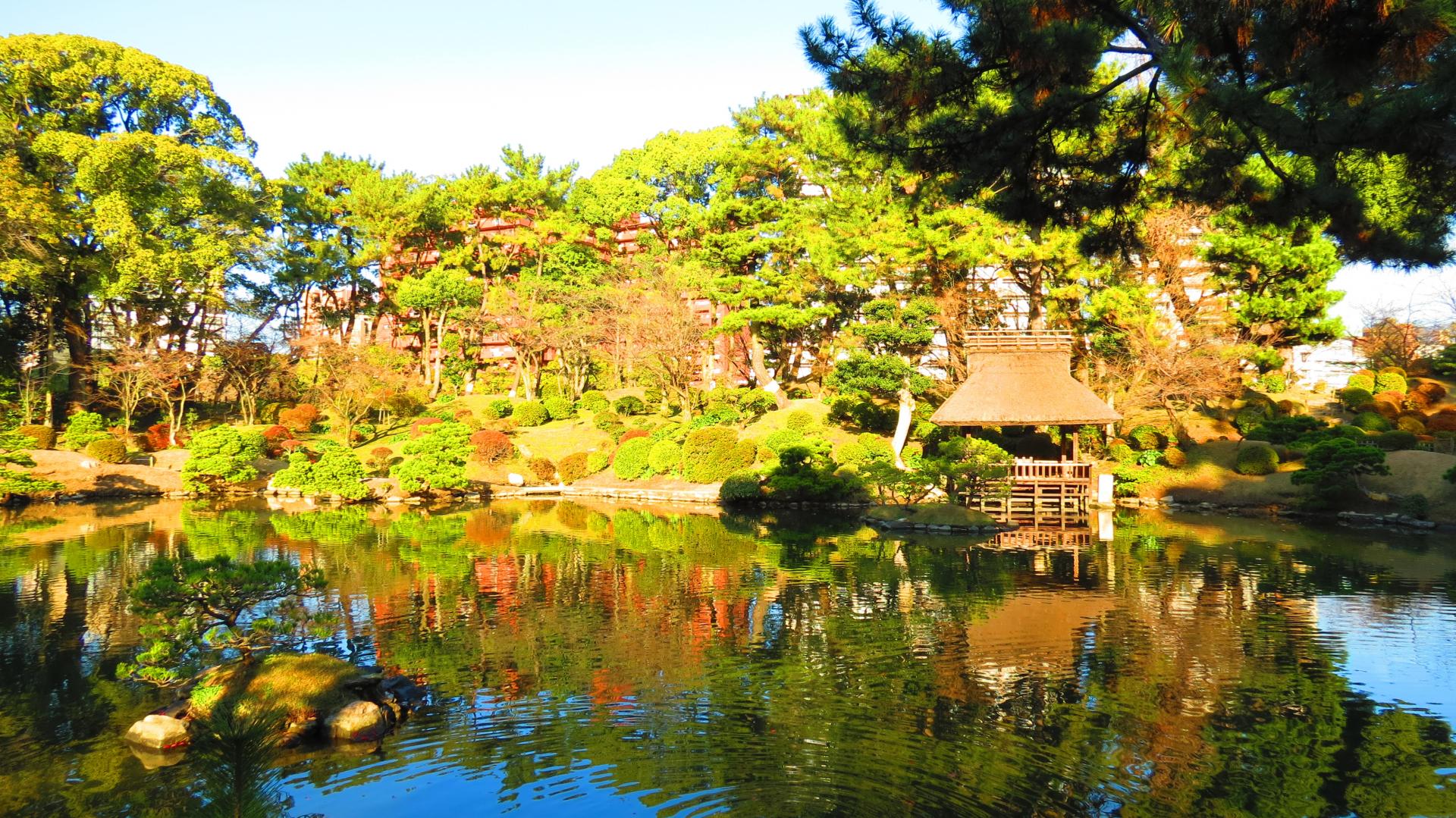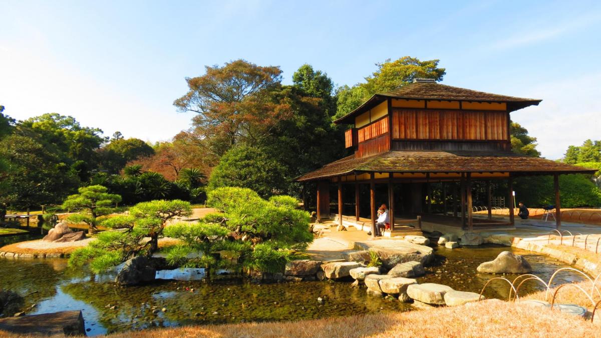 Ce jardin de 4 hectares a été dessiné en 1620 par le seigneur de la région, Nagaakira Asano. Il est situé près de la rivière Kyobashi, d'où il puise l'eau pour son étang (inspiré du lac Xihu en Chine) et ses cascades.