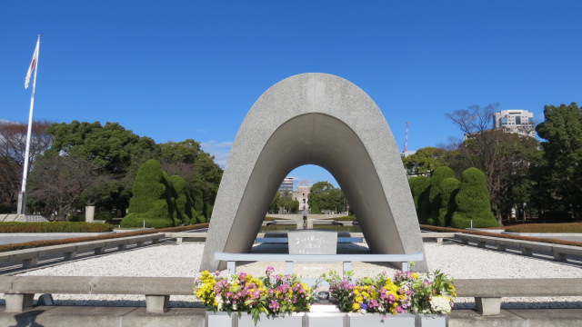 La reconstruction de la ville intègre un Musée de la Paix, dont les bâtiments ont été conçus par l'architecte Kenzō Tange. Un vaste parc, le Parc du Mémorial de la Paix, s'étend sur 12 hectares, à proximité de l'hypocentre de l'explosion, dans lequel chaque année, le 6 août, une cérémonie commémorative est organisée. Ce parc abrite de nombreux monuments à la mémoire des victimes de la bombe. Le cénotaphe contient le nom de toutes les victimes connues de la bombe ; une flamme de la paix y brûle, destinée à rester allumée tant que des armes nucléaires existeront. Parc du Mémorial de la Paix