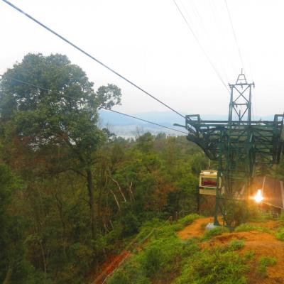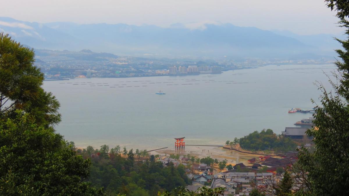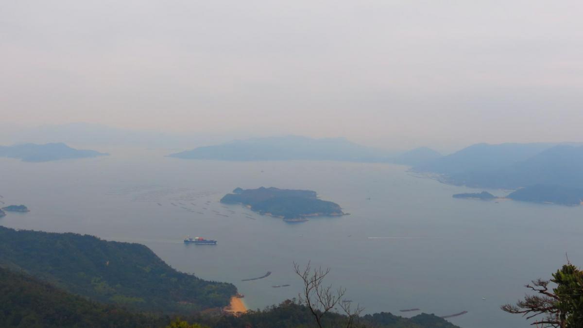 Après cette magnifique mise en bouche, direction le Mont Misen qui avec une altitude de 530 m, est le point culminant de l'île. Après une trentaine de minute de marche, je regagne un téléphérique qui va me permettre de m’approcher du sommet en 20 minutes au lieu de deux bonnes heures de marche. De la gare, 30 minutes de marche seront encore nécessaire pour rejoindre le sommet d’où l’on jouit d'une vue spectaculaire sur la mer Intérieure même avec ce temps maussade.